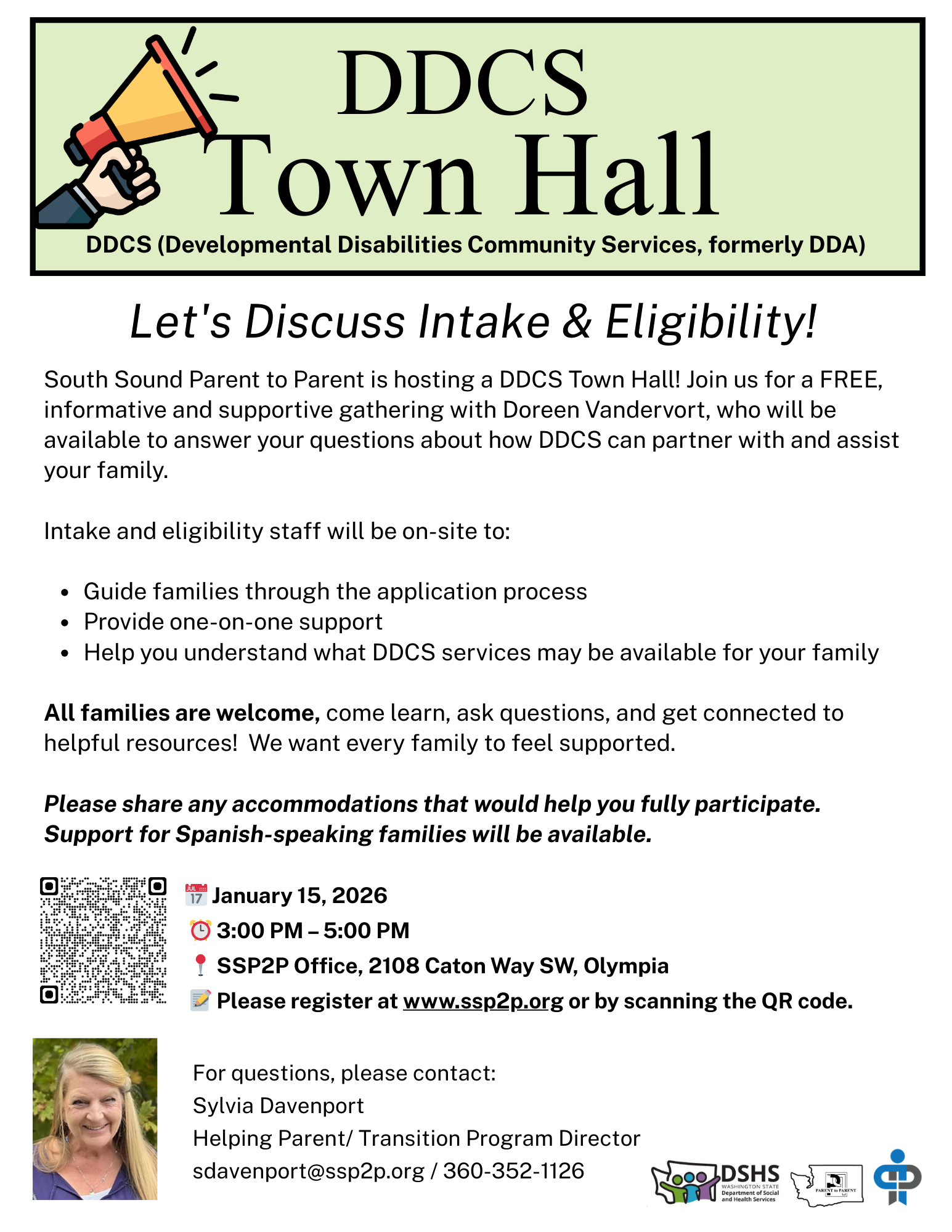 If you receive services from SSP2P, please help yourself to our Olympia lobby filled with meal bags and other essential items.